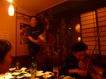 ツアーの思い出 各地の美味いもの その2 Posted on 2012年10月6日 by nozawakenji 道後温泉 で ミユキタンゴに 会いました いい湯だな!! 坊ちゃんのなかの 私 同じ愛媛 伊予でも 鯛めしの食べ方が違うんですよ 生で刺身のように 食べる鯛めし と 一緒に 炊く鯛めし 今回は 両方とも 食べました 朝 早く起きて出発 方向は違うのですが JR松山駅へ ここの駅そばは 宇和島名物 安岡蒲鉾店の 揚げたての じゃこ天が食べられるのです 別府では 大好きな居酒屋さん「うれしや」さんへ また ここに来られて 幸せです 福岡と大分の県境の 「森の風」の公演のあとは 耶馬溪の「次郎長」へ まっしぐら 肉肉肉肉肉肉肉肉肉肉肉肉肉肉肉肉肉肉肉肉肉肉肉肉肉肉肉肉 熊本では 川波幸恵さんの 誕生会 居酒屋さんに ギター、バイオリン、コントラバスを持ち込み 誕生会 おめでとうございます 去年のツアーは 青森酸ケ湯で リリアナさんの誕生会 今年は 熊本で 川波さんの 誕生会 なんと 思い出深い ツアーなのでしょう!! ツアー最後の食事は 熊本空港での チャンポンうどん あーー よく食べました 今回も 共有:Facebook