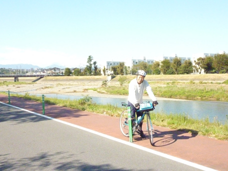 多摩川自転車道を 知り尽くしているヨーキチさんの後についてヨチヨチと