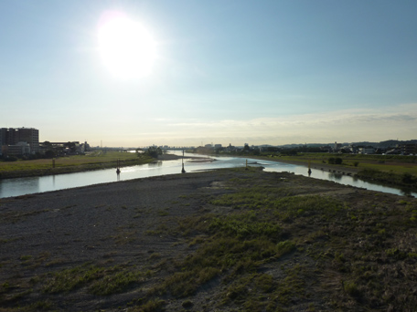 朝日を浴びた多摩川は 平日なので 自転車乗りは少なめです