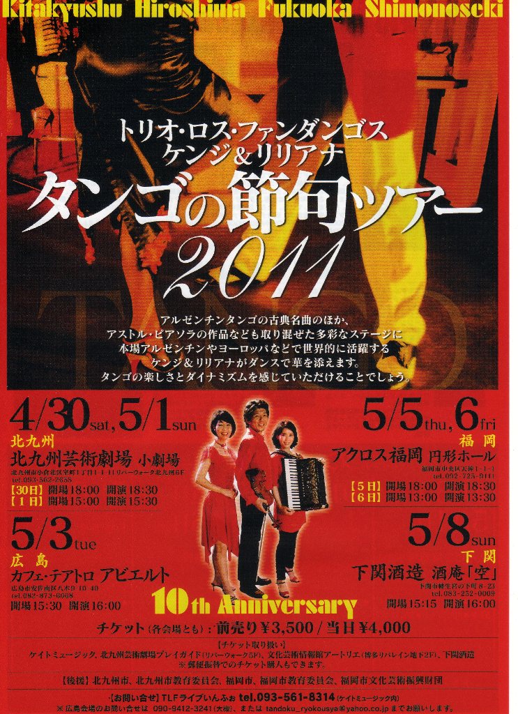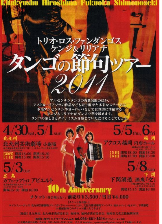 「トリオ・ロス・ファンダンゴス ケンジ&リリアナ タンゴの節句ツアー」がはじまります
