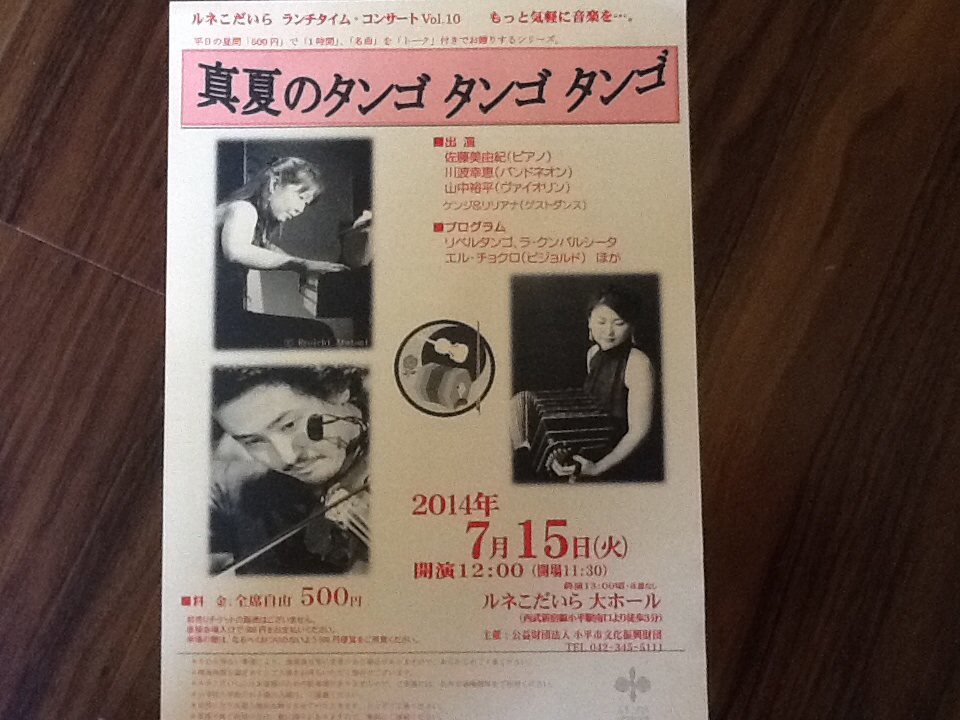 7/15(火) 12:00開演「真夏のタンゴタンゴタンゴ」