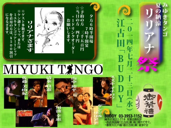 7月23日(水)19:30開演 江古田バディ「リリアナ祭ライブ」に
